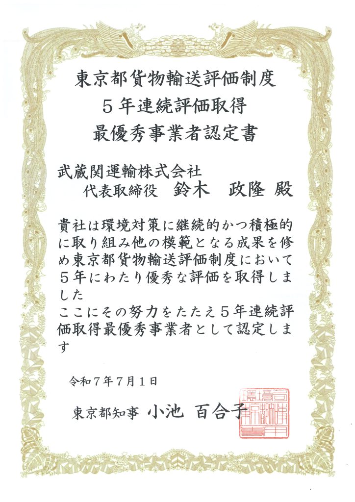 2025年度東京都貨物輸送評価制度 評価証明書
